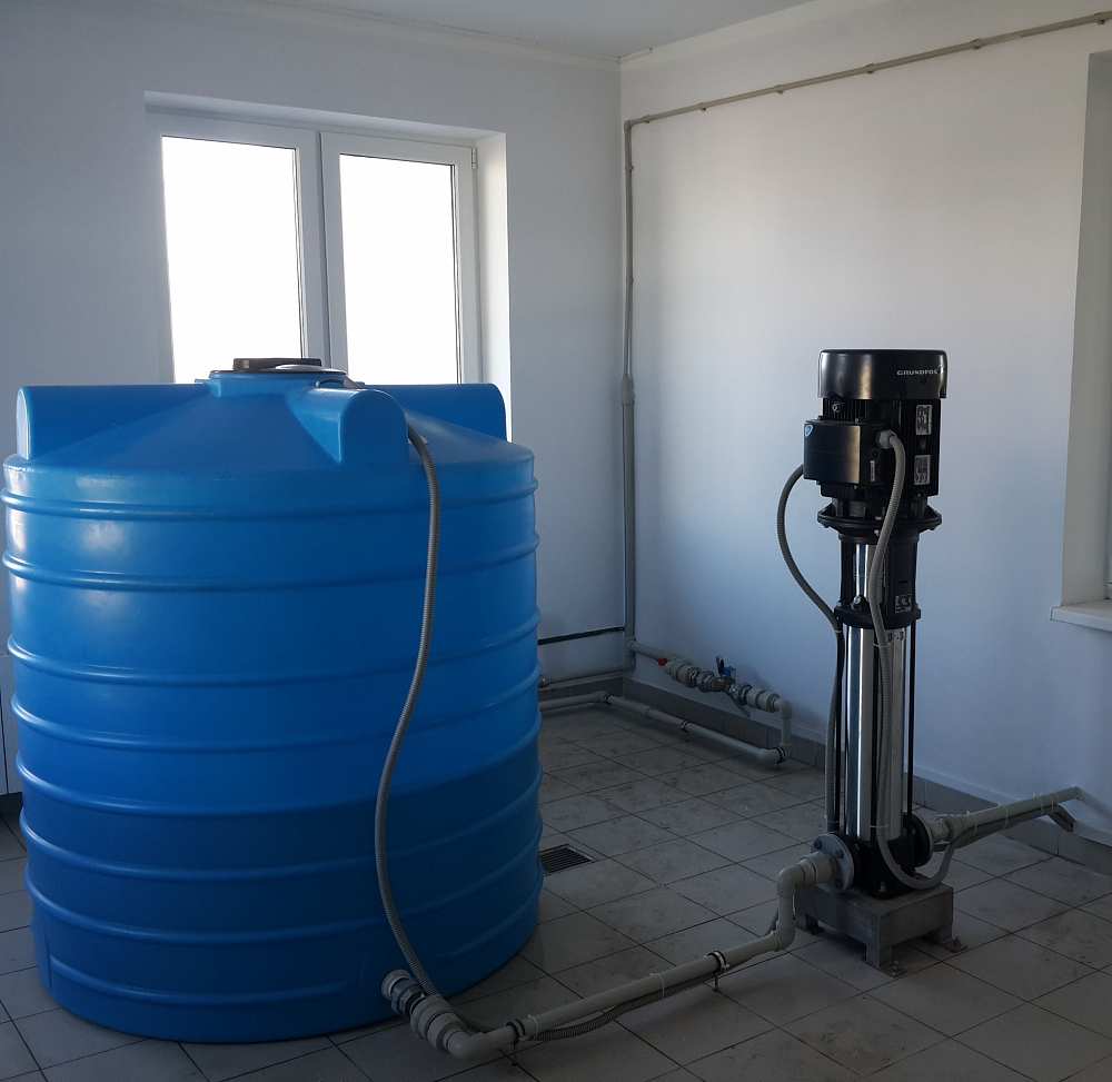 Ок – электромагнитный клапан, Бак – емкость для воды (с датчиками уровня), ННД – насос низкого давления, Ок - обратный клапан, ДД - датчик движения (фотоэлементы), ПУ – пульт управления.