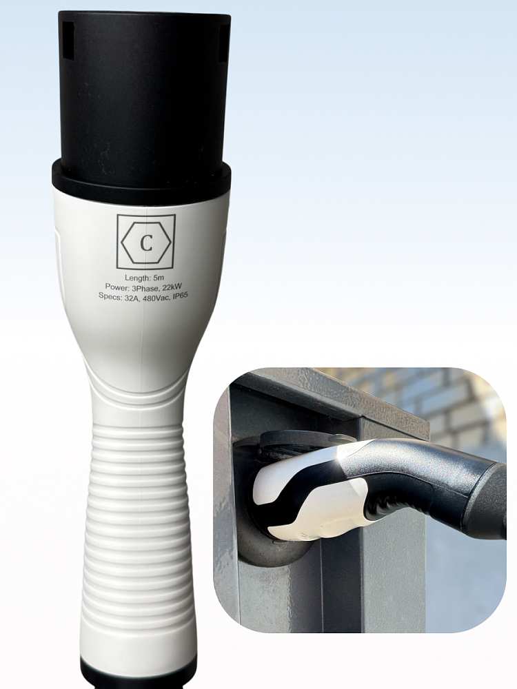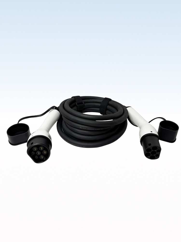 Кабель предназначен для легкого и безопасного подключения автомобиля с разъемом Type 2 к зарядным станциям с таким же портом. Совместим с трехфазными зарядными станциями, обеспечивая быструю и стабильную зарядку мощностью до 22 кВт.