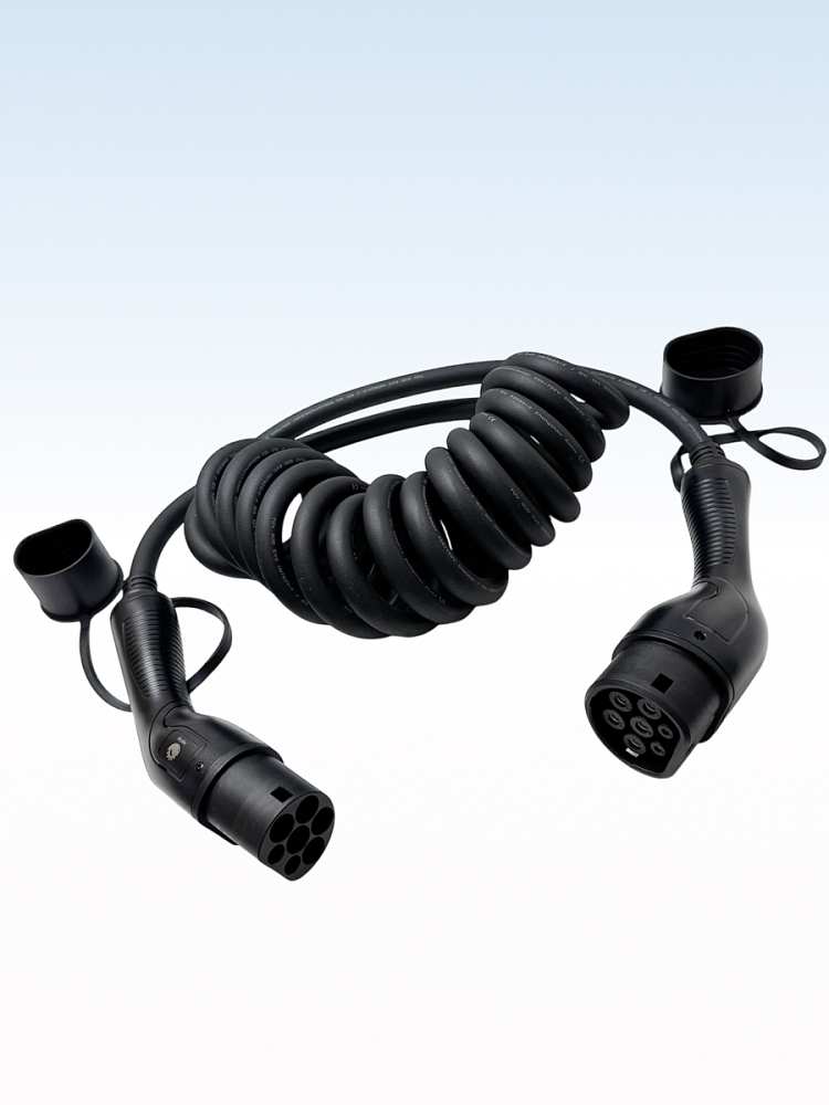 Зарядный кабель-спираль для зарядки электромобиля TYPE 2-TYPE 2 на 7 м и 22 кВт (трехфазный)
