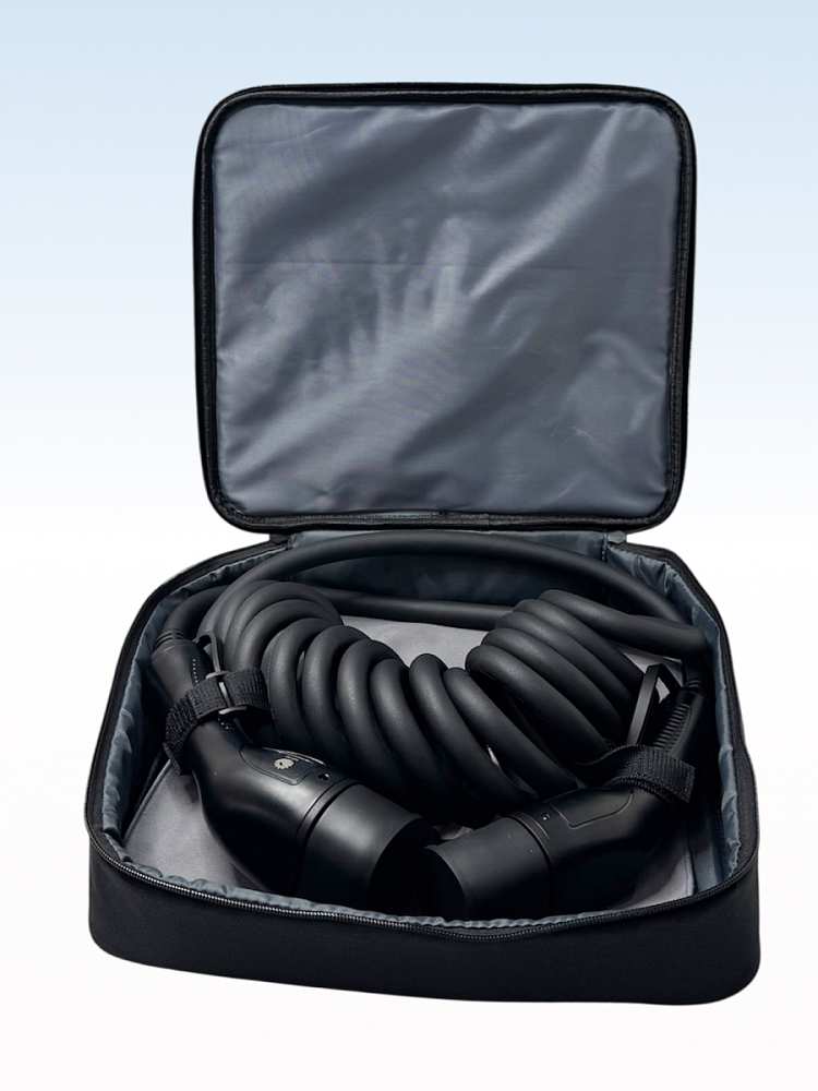Надежный и удобный спиральный (пружинный) кабель зарядный TYPE 2-TYPE 2 для электромобиля с сумкой для хранения предназначен для безопасного подключения автомобиля с разъемом Type 2 к зарядным станциям с аналогичным портом. Поддерживает работу с трехфазными станциями и обеспечивает быструю и стабильную зарядку мощностью до 22 кВт.