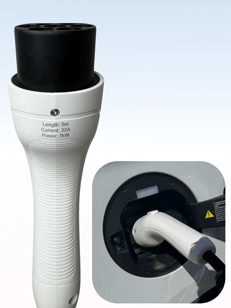 Длина кабеля составляет 7 метров, что удобно для подключения к станциям, расположенным на удалении от автомобиля. Он поддерживает мощность до 7 кВт (1 фаза, 32 А), обеспечивая оптимальную скорость зарядки. Разъем GBT оснащен замком, который предотвращает случайное отключение во время зарядки, а разъем Type 2 гарантирует стабильное соединение и удобство эксплуатации. Кабель можно использовать как дома, так и на общественных станциях Type 2 для зарядки электромобилей GBT.